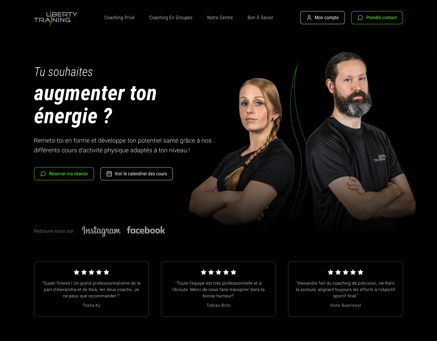Refonte du site web de Liberty Training, centre de coaching sportif qui a pour vision le sport, le mouvement, la santé et le bien-être pour tous.
