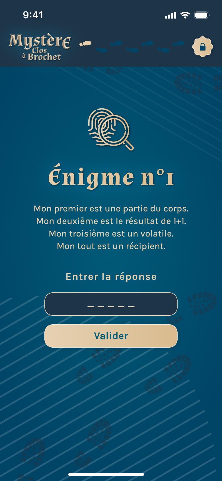Pour répondre aux besoins de notre client, nous nous sommes plongés dans l’univers des Escape games et les avons accompagnés dans l’élaboration d’un univers visuel et le développement technique de l’application. L’application a été réfléchie pour offrir une expérience ludique et unique aux nouveaux apprentis de Clos Brochet, tout en permettant à l’EMS de pouvoir gérer elle-même le contenu des énigmes et l’adapter à ses besoins futurs. Visuellement, nous avons cherché à créer une atmosphère mystérieuse au travers du choix des couleurs et des polices tout en assurant une cohérence visuelle avec la ligne graphique de Clos Brochet.