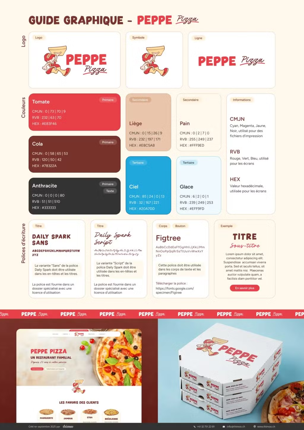 Pour finir, un guide graphique a été réalisé pour la pizzeria afin qu’elle puisse s’approprier sa nouvelle identité et qu’une cohérence visuelle soit garantie pour tous ses futurs projets.
